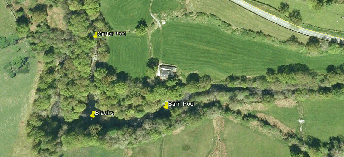 Fishing left hand bank downstream . Positions on map are approximate.No photo available due to access