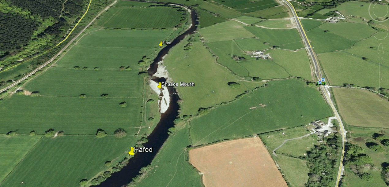 Because Cwmlanerch, Hafod, Sharks Mouth and Flats are so close to each other , they appear all on the same map but with individual photos ( Now showing). Parking is also available by the Cottage at the entrance to Cwmlanerch Farm and walking through the Caravan site down the path to the river and following the river downstream or access from the steps to the Wall Poool.