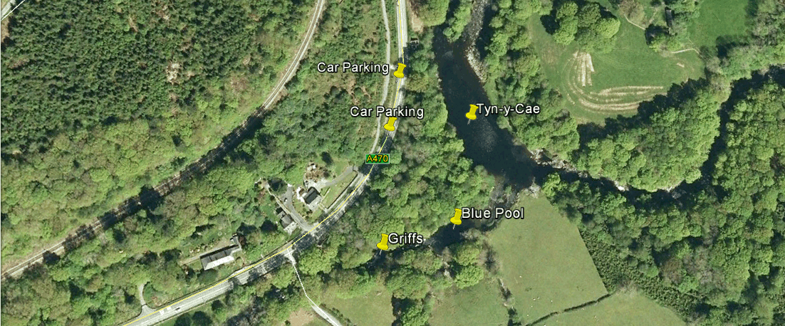 Downstream left hand bank.Easy to get from the main road. Steps lead down to this pool by the bridge .